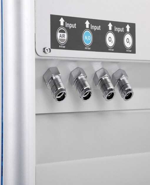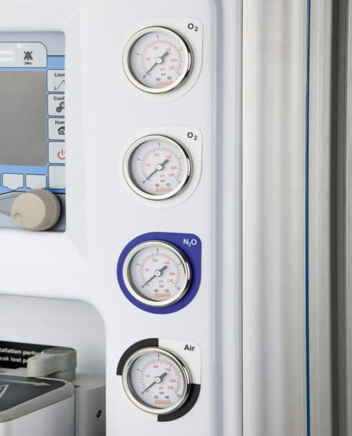 این دستگاه دارای محدوده های قابل تنظیم برای اپراتور جهت ایجاد آلارم سیستم تنفسی است. با وجود سیستم اندازه گیری اکسیژن میتوان آلارم مربوط به میزان اکسیژن تنفسی مسیر دم را فعال کرد. همچنین در صورت قطع برق دستگاه به طور خود کار از باتری داخلی استفاده میکند .